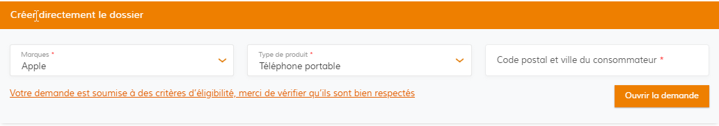 Une fois que vous avez sélectionné 'Téléphone portable' dans la liste des produits :